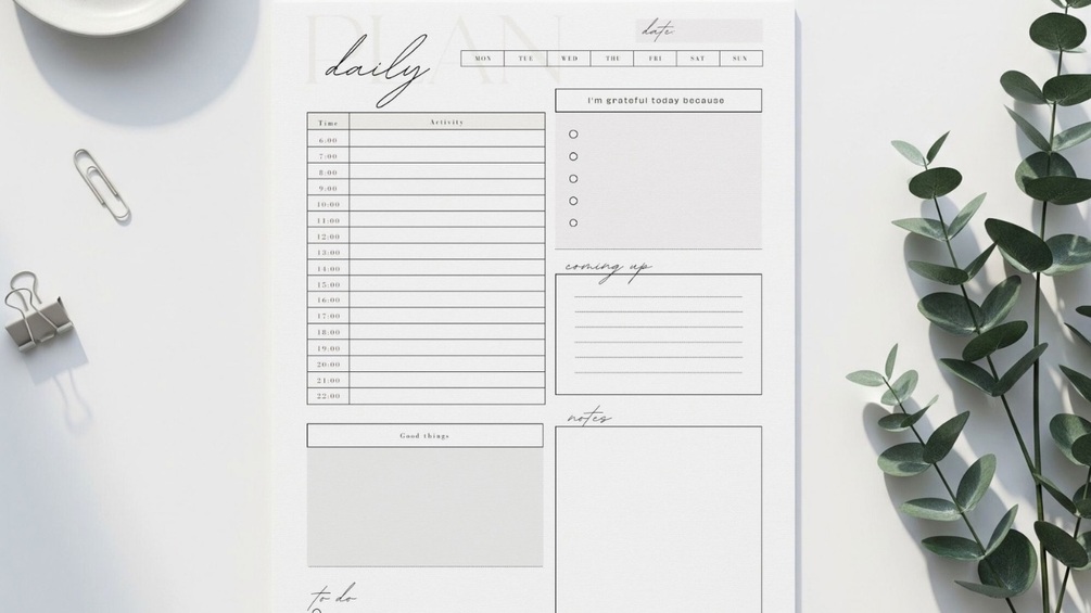 - 1 x Daily Planner Page (undated)